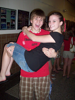 Saturday morning we headed to Topeka, Kansas to visit my cousin, her husband, and their three kids. The two girls Lindsay and Taylor were the flower girls in my wedding 9 years ago. The whole reason for this "Girl weekend" was to watch two of my VERY TALENTED cousins star in the play High School Musical at the Topeka Civic Theatre. I had NO IDEA that they were both so TALENTED. Nick, is the middle child and graduated from high school this year. He played the lead role, Troy in the play. He was AMAZING!! Taylor, is the youngest and will be a junior next year. She played the role of Cathy (cheerleader) in the play and was AMAZING as well. She has the best stage presence. She knows how to "play" the crowd. I had the best time watching them in this play. I took a few short videos of them. You will have to excuse the poor quality as it was taken by my small digital camera. There were no cameras allowed but I HAD to sneak a short video. Check them out.....